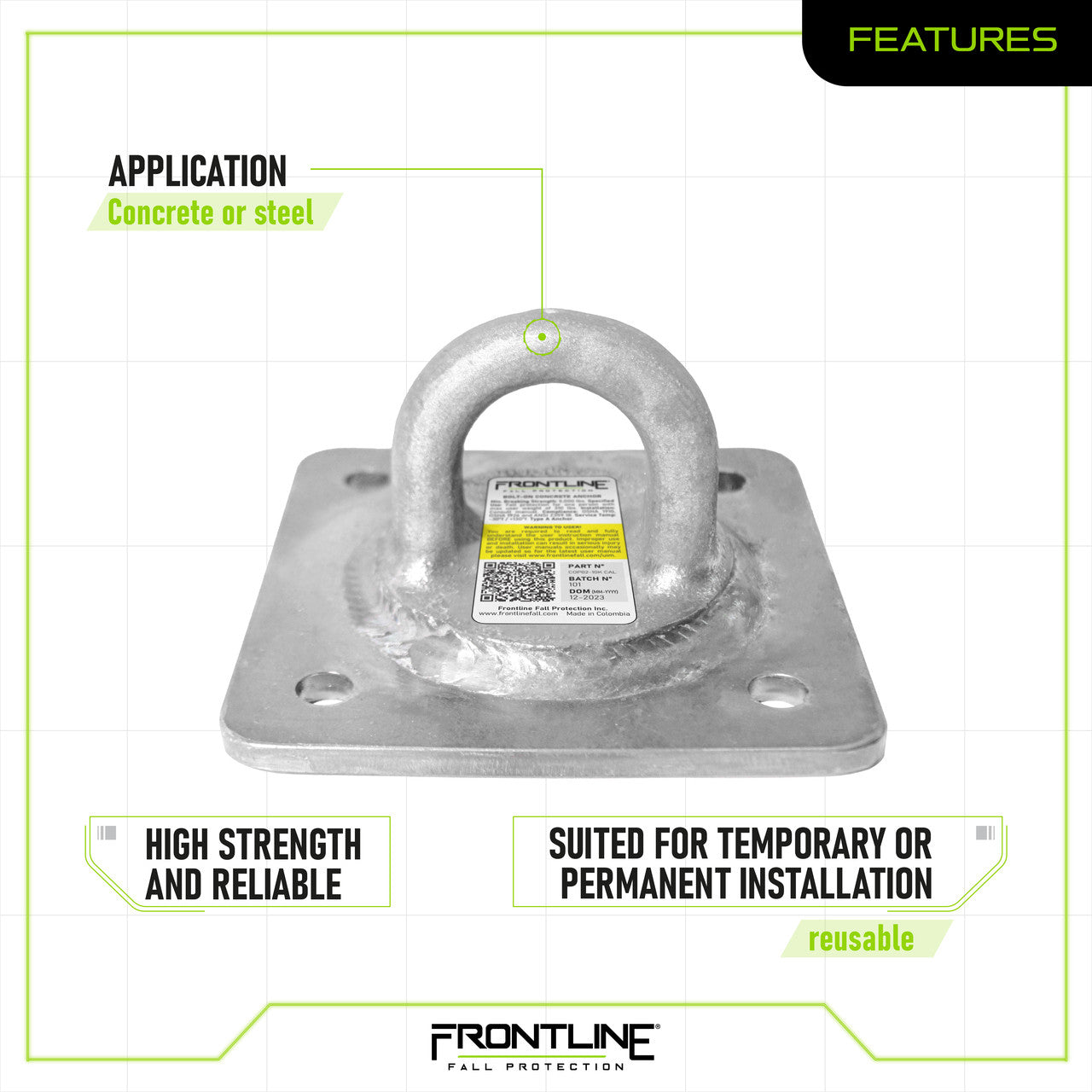 Frontline COP02-10K-CAL Concrete and Steel 10k Lbs HDG Reusable Anchor Plate - CAL-OSHA
