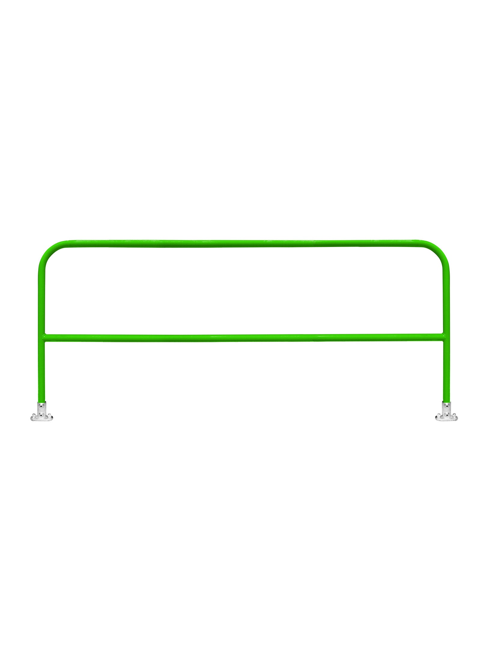 Frontline features a variety of perimeter edge protection, including non penetrating and fixed solutions for permanent installation. This kit includes a fixed solution that can easily go onto concrete and steel substrates. It's manufactured out of high strength ASTM rated steel and painted with safety green or safety yellow electrostatic paint for long lasting durability and added visibility at the workplace.