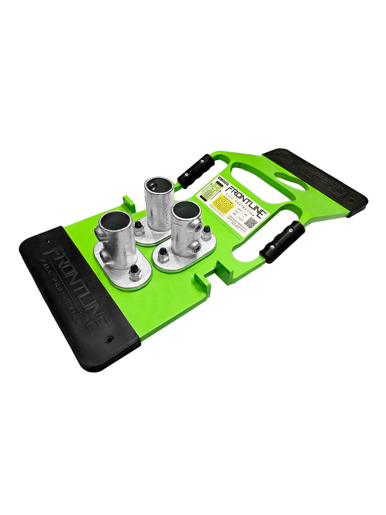 The Frontline base is intended to go with our Guardrail Systems. The Frontline base is lightweight and it's innovative design brings the best in class when installed with our rails and used in conjunction as a fall prevention system.