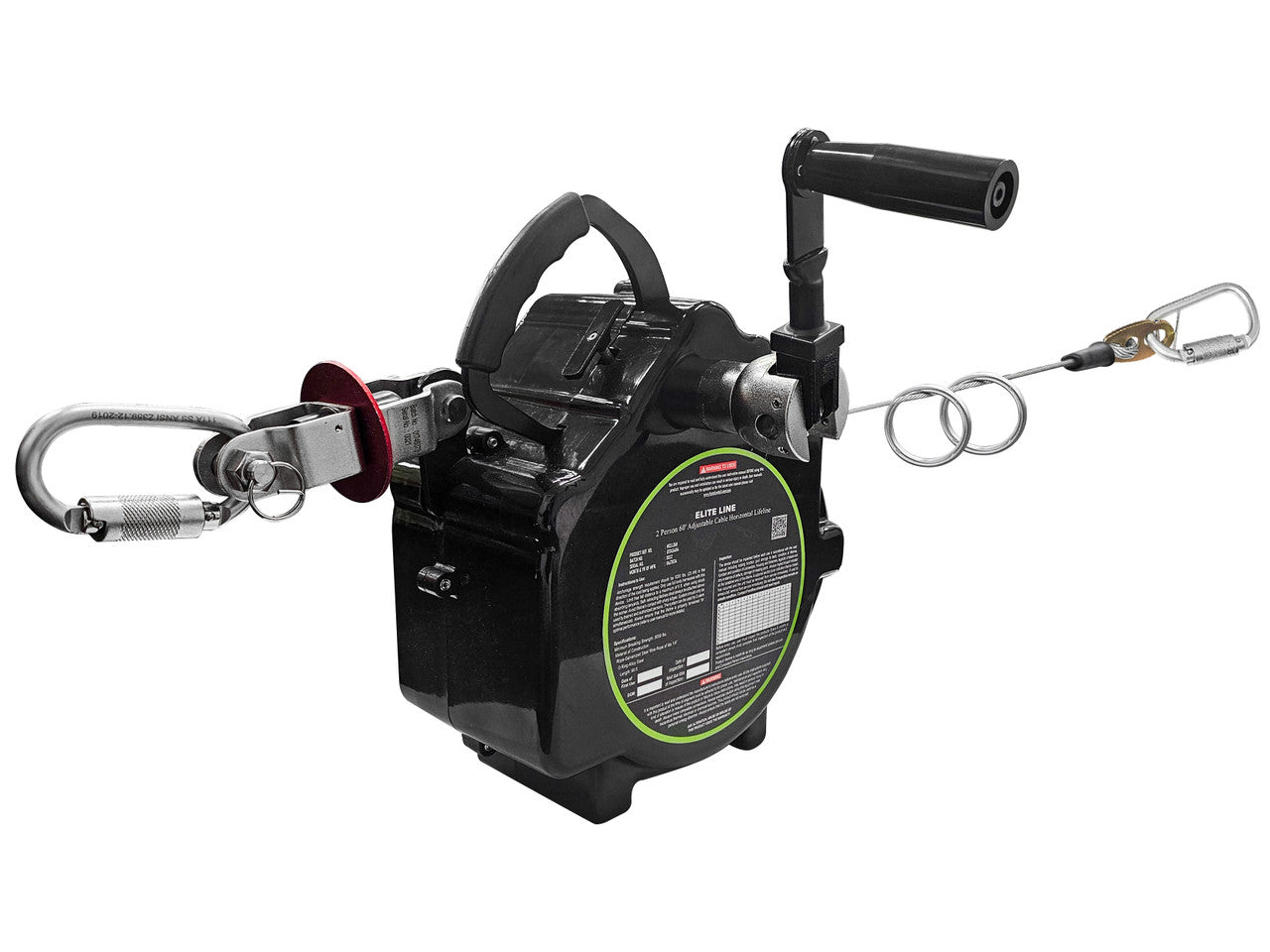 The system is built with a durable and high-strength polymer housing, giving you that product longevity and reliability needed to take from one jobsite on to the next jobsite. A push-button mechanism allows for easy extension and retraction of the lifeline to adjust to your desired length. The built-in winch system tensions the line and once enough tension is applied on the system then the rotating tension indicator will move freely, indicating that necessary tension has been achieved and the system is ready for use.