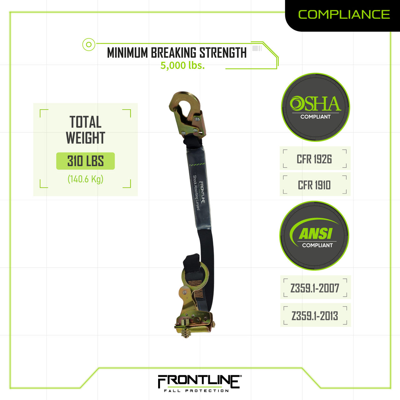 The Frontline self-tracking openable rope grab with integrated 3' shock absorbing lanyard is your go-to solution when working on a roof or vertical job that the use of a vertical lifeline is required.