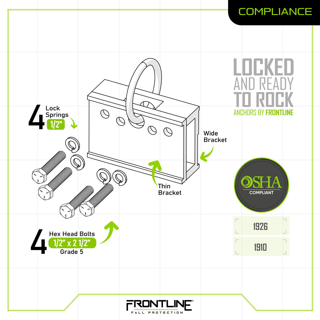 The anchor is compatible with an extensive use of connecting devices, including self-retracting lifelines, shock absorbing lanyards and vertical lifelines.