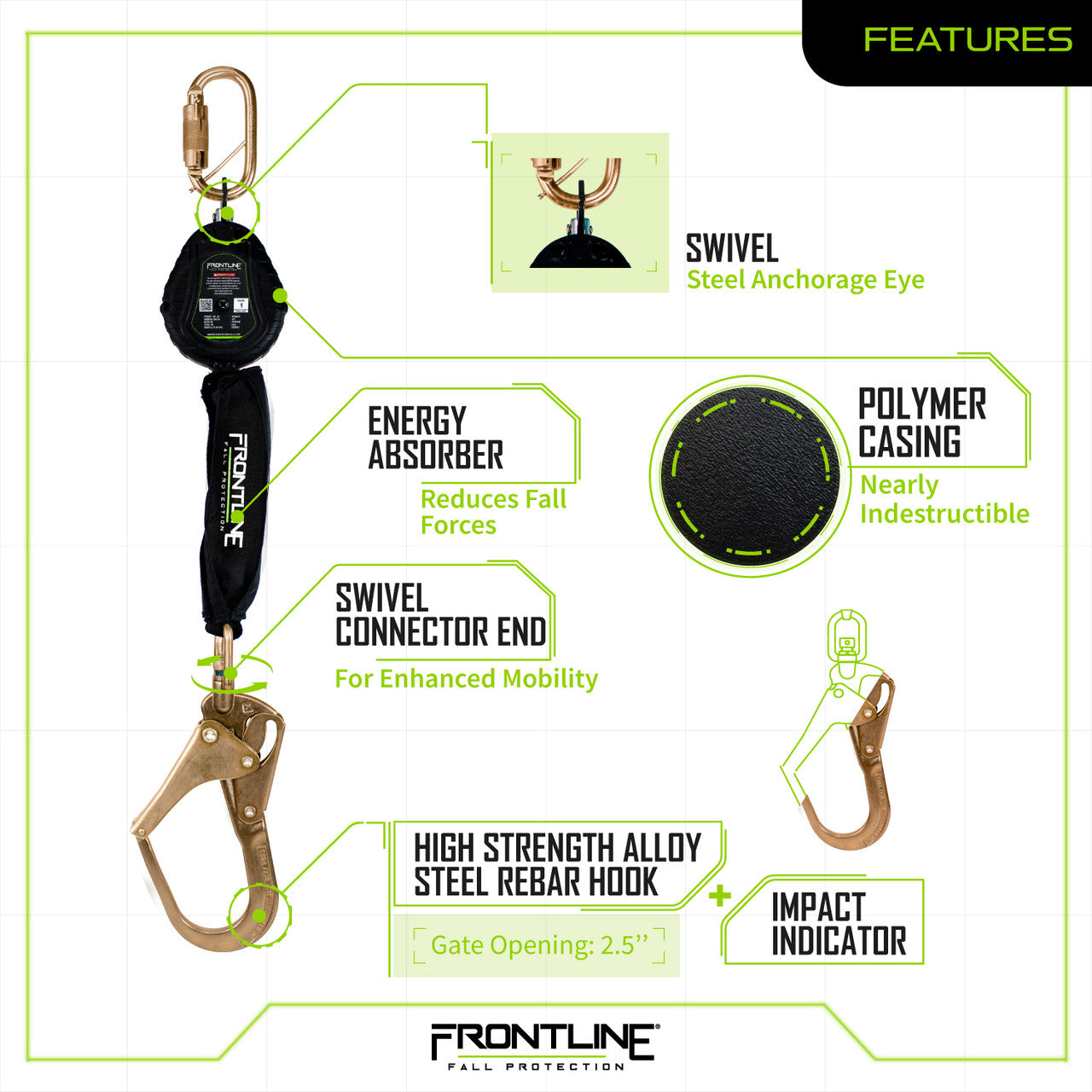 Frontline RPW061R Web Single Leg 6' SRL with Steel Rebar Hook End