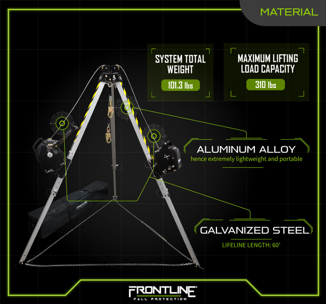 Frontline TAN07RURP MEGApod Confined Space 7' Aluminum Tripod with 60' Winch and 3-Way SRL